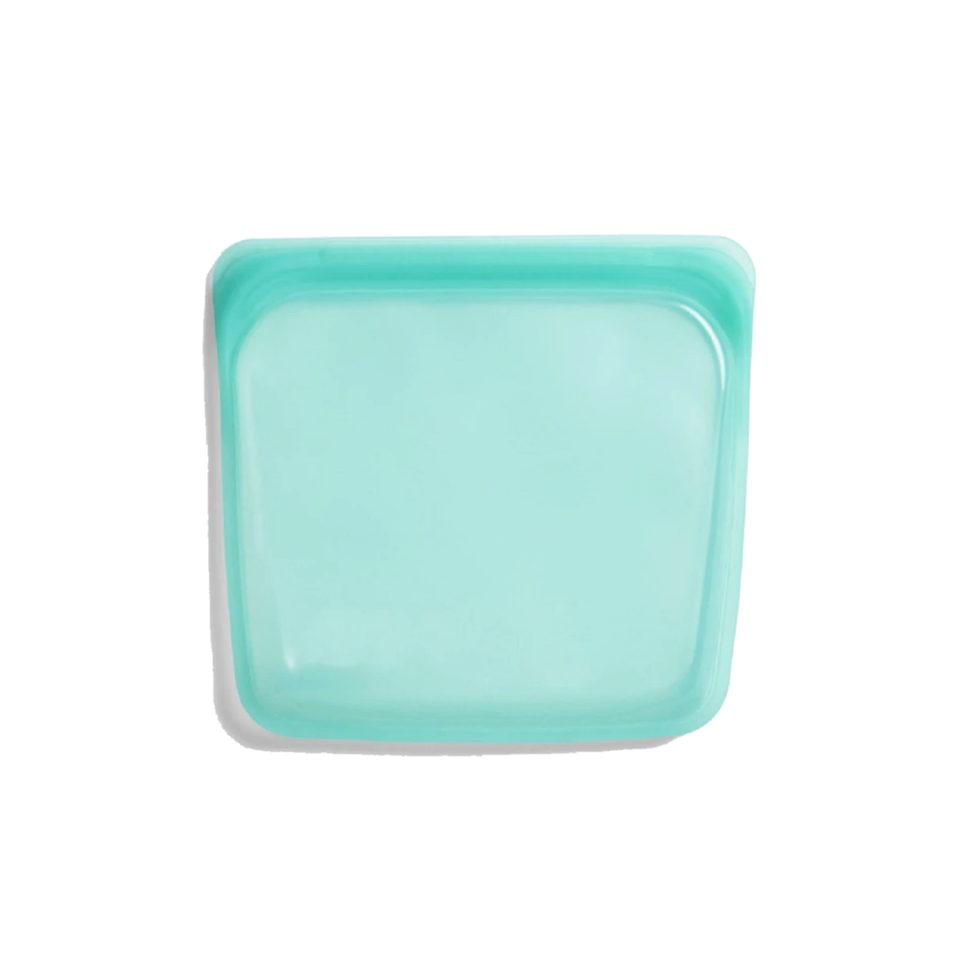 Reusable silicone food storage bag – freezer‑ and microwave‑safe.